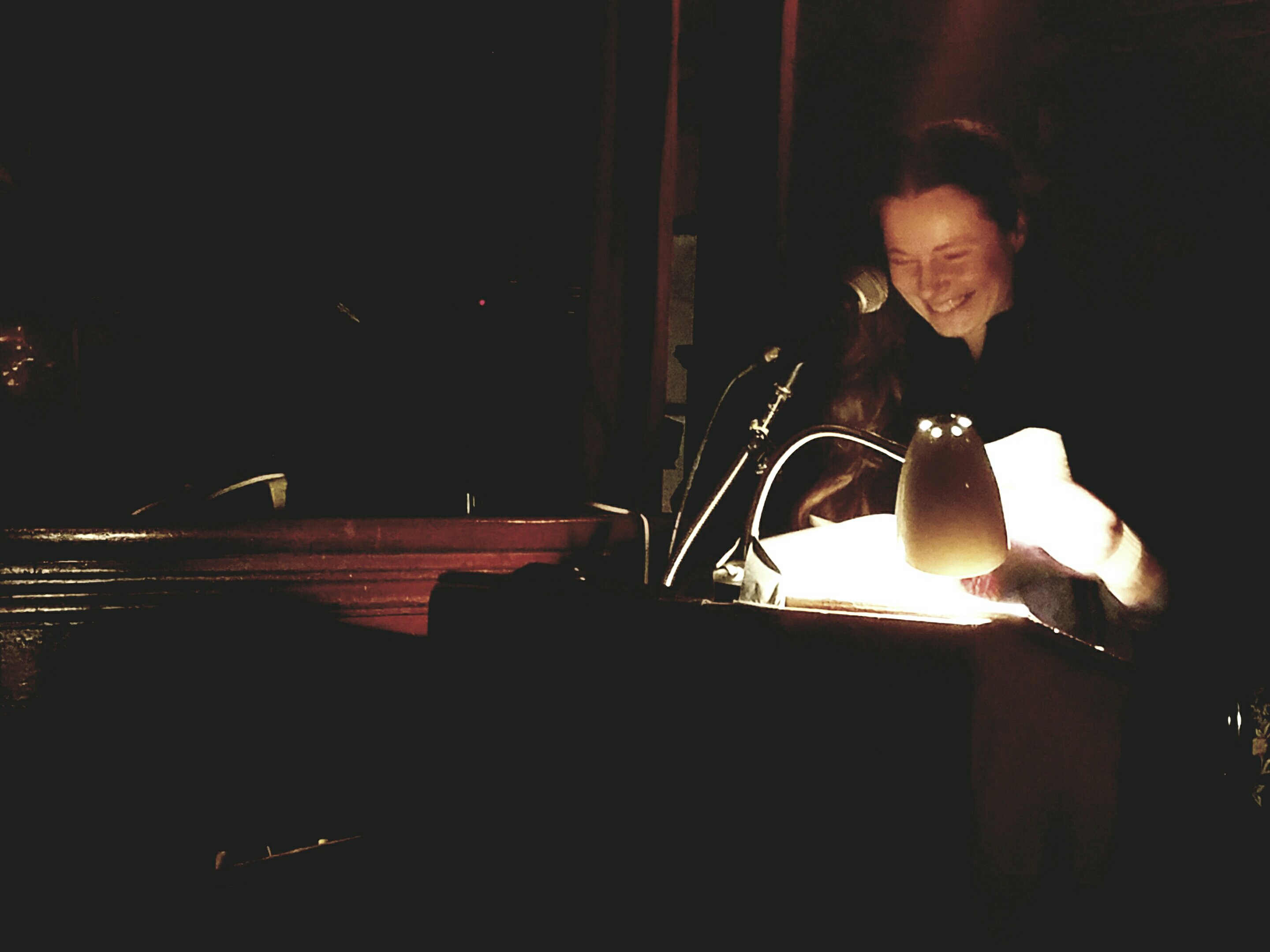 Sophie Malleret at the Great Weather for Media reading 14 November 2018 kgbbar.com Photo by Anne Weisgerber.